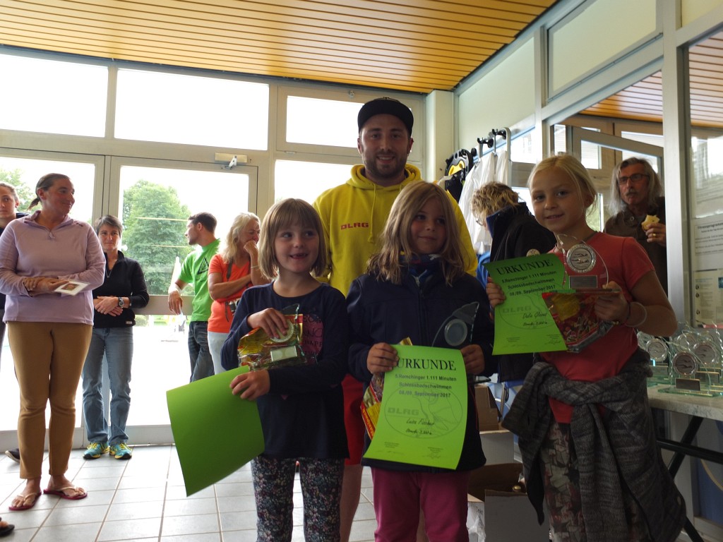 Auch dieses Jahr konnten wir mit unserem 1.111 Minuten Schwimmen einen fulminanten Schlusspunkt in der Freibadsaison setzen. Trotz wetterbedingt eher schwachen Teilnehmerzahlen konnten am Ende des fünften Langstreckenschwimmens eine Gesamtstrecke von über 1200 km verzeichnen. Das macht mit 9176 Meter pro Teilnehmer einen neuen absoluten Rekord bei unserer Veranstaltung und reicht immerhin Luftlinie von Remchingen bis nach Nordirland! Und obwohl wir leider auf viele kurzentschlossene Freizeitschwimmer am Samstagvormittag verzichten mussten freuen wir uns umso mehr auch mit der Altersspanne von Jona Neele mit 400 m (5 Jahre) bis Bruno Hartmann mit 1,5 km (90 Jahre) einen neuen Rekord aufgestellt zu haben. Wer sich einen Überblick über die Fülle an Zahlen machen möchte findet hier die kompletten Listen (Gesamtlisten sowie in Altersklassen aufgeteilte Einzellisten).